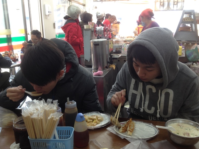 昨天小寬主動提議今天去吃永和豆漿的早餐。早上在出門的時候,我怕豆漿店太low了,旁敲側擊地提議是否改到附近的咖啡店坐坐,但被小寬一口回絕了。這家永和豆漿,自從舊址蓋了一坪60萬的豪宅,就遷到一個離我們家較遠的位置。我們已經很久很久沒有一起去這家永和豆漿吃早餐了。那個依然髒髒、油油、舊舊、熱烘烘,空氣中瀰漫著烤焦香味的店,勾起所有和孩子們小時候共同擁有的溫馨記憶。小寬用這種方式跟我餞別,傻傻的當爸爸的也只能默默地感覺良好而已。除了蛋餅、豆漿,我還特地吃了一套燒餅,裏面包的油條好酥脆,不知含有多少被懷疑會引發老年痴呆的鋁化劑,但是這就是永和豆漿的精華,死也要吃呀!這頓看似平凡的早餐,適時全副武裝了我獨自再出遠門所需要的所有勇氣。孩子愈來愈能體量我們付出的有限,我們則是愈來愈能感受到他們真純回饋當中感動的無窮。 如果這是我們做父母從前世帶來的的痴呆枉傻,這也是我們今生今世自己的心甘情願。 小寬在給我的生日卡上,説他是一株將長成大樹的小草,我是那吹拂他的風,他拭去眼中珍珠般的水滴,要把明天的太陽都留給我。他把簡單的哲理藏在純潔的詩裏,我也只能自作多情地感動。願在新的一年,孩子們平安順利,而且能愈來愈好。全家人一起分頭努力,小寬,你也要格外加油囉! 2015/1/4 永和豆漿的餞行 Damakey