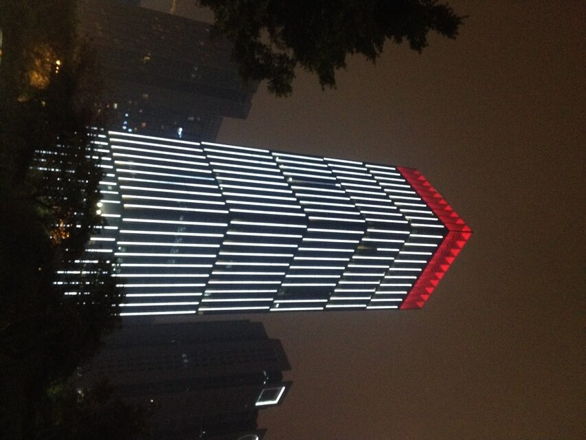 傍晚要揮別來自大連的朋友,小小的Canteen聚攏了依依的離情,廣州溼溼冷冷初次的天氣,是否讓他們想起東北冰冰寒寒再見的雪?今夜過後,廣州將不再只是他們想像中的南方,因為在他們北返的行囊,已經添加了可以掛在心頭的遙遠。廣州大道中新建成的摩天大樓掛滿LED燈,上紅下白,是戴了紅色帽子的聖誕雪人?還是從天外懸下許願裝夢的超大襪袋?珍重再會了,親愛的朋友。北國現在應該不缺這種純正的雪,南邊如今多了這一座虛擬的白。當你們再見那紛紛的雪,會不會想起這座方正的白?我看著這白,可是想著我尚未認識你們的雪。2013/12/13 裝夢的超大襪袋 Damakey