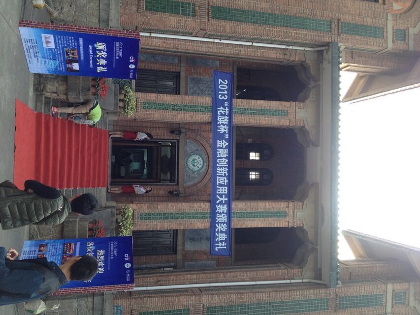 「花旗杯」金融創新應用大賽,在中山大學舉行頒獎典禮。這次總共有四十六個學校,一百六十五隊參加競賽,最後由上海財經大學奪得一等獎,武漢大學和中山大學是二等獎。評審委員説,這次參賽的主題很多樣,競爭很激烈,一直到了幾乎是最後了都還無法決定那一隊是一等獎。頒獎之前,評委、參賽師生、來賓館集合在中大的大草坪上合照。學校早就佈置了三層看台,學生站後面三排,老師貴賓站學生前面,最前面的一排是座椅,上面貼了VIP的名字,居然也有我的。在中國照團體照,是非常講究長幼尊卑的,但被推到第一排的座位,令我渾身感到不自在。頒獎時,幾乎嘉賓都被安排上台頒獎了,設想真是周到。頒獎完,大家相約明年上海見。晩餐由中山大學設宴款待,我和來自四川和武漢的參賽同學及中大的志工同學同桌。同學都很在意是否得獎可以讓他們優先錄取,我只能告訴他們,有參賽的經驗,會為resume加分。2913/12/7 「花旗杯」金融創新應用大賽 Damakey