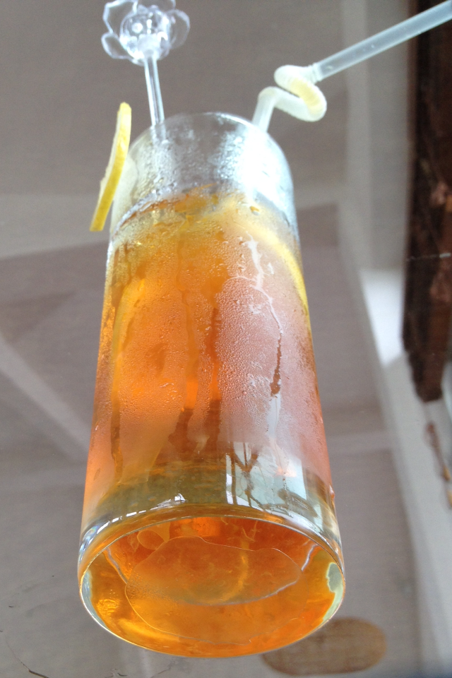 美國廣州大使館的空氣即時警示,顯示橙黃色不健康的中度污染。看看落地窗外的街景,陽光普照但空氣中有一層薄薄的、望遠不穿的灰紗,不禁嘆了一口氣,又是一個秋高氣不爽的天氣。到都城快餐廳吃了布拉腸和廣東粥之後,就搭地鐵5號到車陂南轉4號,要和上星期一樣,一路向南去海邊,試試手氣,看看是否能尋得一方乾淨一點的空氣。地鐵上有一位約七、八歲的孫女和婆婆坐在一起。婆婆拿出了蛋餅,幫孫女把塑膠袋褪一些下來,孫女接過去就在禁止飲食的地鐵車廂裏開心地吃了起來,吃到比較硬的部分就伸過去給婆婆咬食掉。吃幾口後,婆婆拿出了開水,直接送到孫女的口上餵食,那孫女下意識地接受了,婆婆沒有問要不要喝水,孫女也沒有要接過來自己拿著喝的意思。又是一個備受寵愛的獨生孫子女吧!記得香港曾有報導,父母對新一代的過度照顧,尤其是透過菲傭,造成兒童手的小肌肉與相關統合能力發展遲緩,有些到了上小學還不會自己綁鞋帶呢!前一陣子,上大學的孩子要騎摩托車,曾一度以安全為由加以反對。對於孩子的過度關心和保護,我們也不惶多讓吧!坐在我對面的青年,把口香糖直接吐在地鐵車廂地板。他看了一下一臉不解的我,匆匆用鞋底去把口香糖磨挪到座位下,好像眼不見為淨就好了。這時我才注意到廣州地鐵的地板是鐡灰色的,讓人懷念起台北捷運乾淨的白。在蕉嶺地鐵站轉乘公車,往十九涌的車站早已大排長龍,數一數越過六十人,等到第二班車才上得了,這一等就是半個鐘頭。抵達南沙濕地公園的時候已經過了十二點,車程共約三個鐘頭,有點折騰。公園裏的荷花田已經過了季,只剩一片枯槁的形容,殘葉 、斷枝、腐蓬,零星幾處的荷葉和難得的荷花,就算是今天的奇遇了。剎時明白,為何門票會是便宜人民幣十元的四十元了。如果在荷花高張盛開的夏日時節,應該要花更多的代價才買得到那一大片的艶遇吧!柏油路步道兩旁種滿高大的細葉榕,隨意垂放到空中的觸鬚,令一陣陣梳過的海風益加舒爽,不自覺伸開雙手去迎接那一次次輕輕的撫抱。在濕地公園唯一的咖啡館坐下來,買不到拿鐵,正好口很渴,就改喝檸檬茶,人民幣22元,成為這個咖啡館一整個下午唯一坐在館內的客戶。我後來才明白為何Waitress為何有點不耐煩,大多的客戶買個水或冰品就匆匆走了或坐到戶外的公共太陽傘下去就近接收海風,誰會呆得像我一樣,花22元,喝一杯再普通也不過、350cc的檸檬茶,坐在館內的窗邊,享受的也是從河海飄進來一樣的風呢?不過我只花了人民幣22元就輕易包下了這別緻的咖啡館,也是一個不爭的事實。會跟我爭的,是一隻繞著我嗡嗡叫的蜜蜂,它好像對Uniqlo淺綠色的polo衫有興趣。2013/11/9 人民幣22元包下了一個咖啡館 Damakey