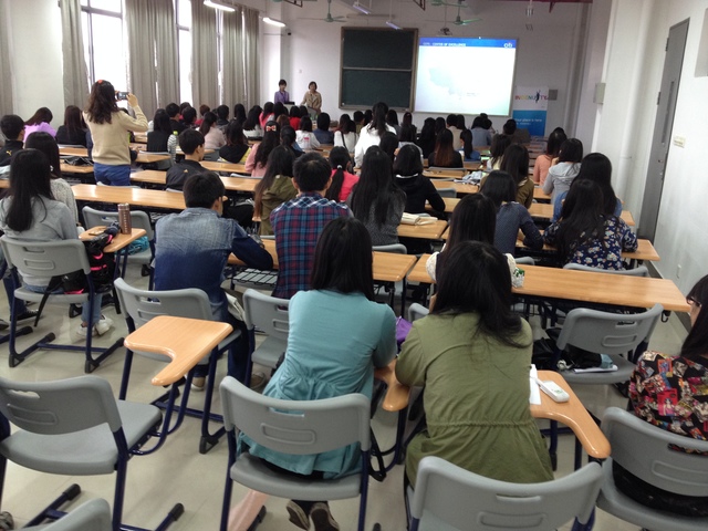 廣東工貿職業技術學院,在廣州東北邊的從化新校區,經過三年的勵精圖治,目前已招收了一萬三千名學生。學校很大,教學大樓很宏偉,大間的教室可輕易地容納超過一百五十人。老師説在這個新校區授課的大多是文科,而理工科還有一些留在市區白雩大道北的舊校區,但只剩下約一千人。因為新校區位置偏遠,所以學生一律住四人一間的宿舍,每間有衞浴和洗衣台,每人每年租金人民幣1500元,我覺得便宜,但廣州的同事不以為然。學校星期二下午不排課,是學生共同課外活動的時間,校園招募就安排在這個時段。今天來的有會計、商管、文秘、英文等等文科的專業,一百五十人的教室座無虛席。學生聽講非常認真,半途離席的人很少,很有紀律,看得出來老師教得很好。我鼓勵同學,一定要搭上中國服務業快速成長的列車,那麼個人未來的前途將無可限量。他們是專三的同學,今年十一月八日之後,就可進入企業實習,不必再上課,在明年六月再回末領畢業証就可以了,屈指一算還只是二十一歲左右的孩子呢!結束前好多人提問,問答之間,充份了解到他們對自己的英語能力非常沒有信心,怕無法通過面試。老師説經常耳提面命,但都不太有效。我想短短二年半要讀完大專的所有課程,時間很緊,難免囫圇吞棗,而英語要好,需要的是時間。2013/11/5 廣東工貿職業技術學院 Damakey