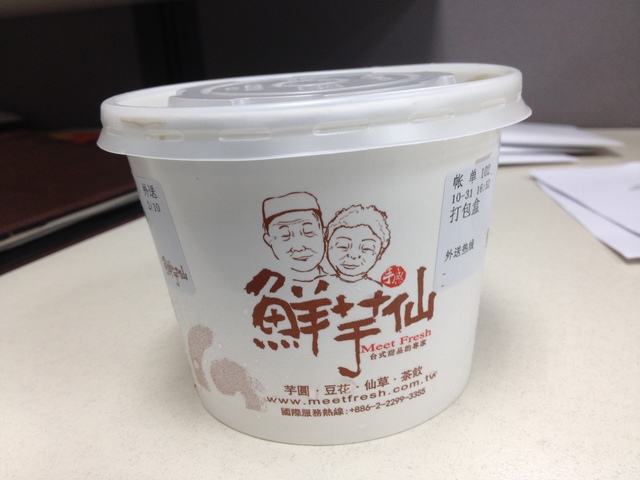 傍晚,來自新加坡的同事,送來了一碗鮮芋仙的芋圓冰,跟我確認這是不是台灣的美食,我驚訝地説「是呀!」。她説昨天看我那麽累,今天大家圍購,就多買了一碗來慰問我,並關心起老爸。我跟她解釋,老爸已經一百歳了,心肺的機能已經衰竭,能沒有受太多的折磨就過去,我們很感恩。她説今年三月,她三十幾歳的哥哥因心臟病猝逝,家裏上上下下都很震驚。我從她泛紅的眼睛,看到忍著的傷悲,這下子換我覺得不好意思了,都不曉得她家裏曾有過那麽大的變故,心想心臟病可能遺傳,只能提醒她要隨時注意自己的身體。吃著QQ的芋圓,想著老爸的假牙,這種美食對老爸太硬了,就通通由我代勞吧! 2013/10/31 鮮芋仙芋圓 Damakey