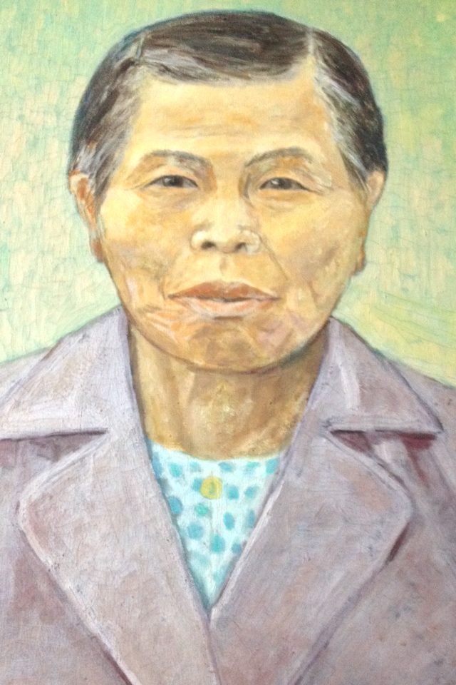 大哥82,二哥80,三哥78,大姊76,四哥74,二姊72,X哥70,五哥68,三姊66,四姊64,小哥61,小姊59,我52。我們這個大家庭有十二個兄弟姊妹,在2013年把每個人的年紀依大小排列,赫然發現除了後面幾個,前十胎都只差短短的2年。辛苦的老母親,每一胎除了懷胎10月,哺乳14個月,就都沒有讓身體多任何一點休養生息的機會,好殘忍的折耗!在老爸百歲的告別式前夕,兄弟姊妹聚集在一起,摺紙蓮花、紙元寶,話家常,緬懷老爸。寫完了老爸的祭文,一直在想的反而是35年前逝世,我劬勞的老母親。天空飄下了涼涼的雨,看著秋深就要入冬。那環抱著她的黃土,伸出的是否是冰冷的臂膀?即將前去團聚的老爸,是否能踏火帶去些許我們遙遠的溫暖?牆上掛著的母親畫像,是二哥在極度悲傷下的作品,母親緊咬的下顎,含著她一輩子從不抱怨、從不向生命屈服的堅忍。在老爸告別式的前夕,好想念我的老母親。2013/10/24 一輩子的堅忍 Damakey