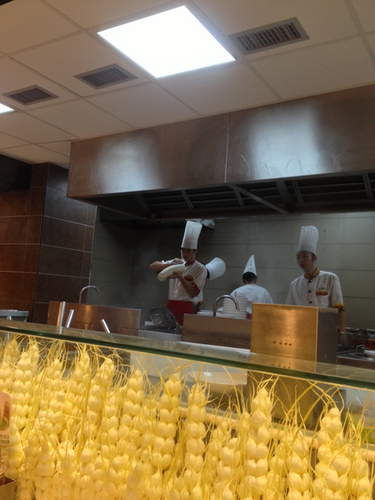 左等右等,無聊之餘拿書出來看,這裏大家都在努力看Menu,就我一個人在努力看書。接下來,較晚到的鄰座麵都來了,我的居然連個影子都沒有。有一位看起來像主管的員工幫我去查,很快端來了一碗排骨麵,我就感激涕零地吃了起來。吃完排骨,才發現是手桿麵條而不是我點的刀削麵,好惱,一定是剛剛催麵端錯了,想想已經吃了一半了,也就算了。才四塊錢人民幣的紅豆湯一大碗,吃起來很飽足,反而成為今天唯一的亮點。隔壁桌的客戶,他們的玉米汁,員工幫忙加熱後再拿來,倒出來喝還是涼的,私底下駡聲連連,可是我看他們也忍氣吞聲地喝完了。