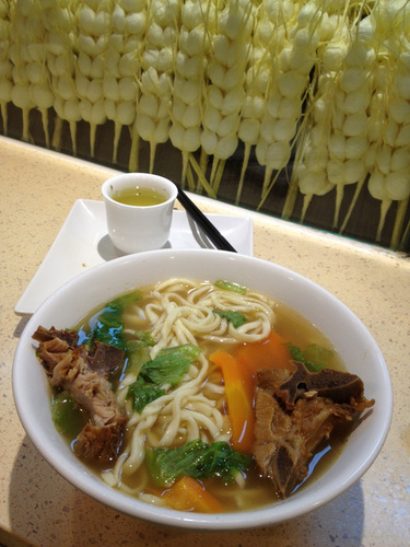 拿出優惠券,仔細一看才發現,至少要有二人同行才能使用,深深感到小娟媽的好處。點了清燉排骨麵和紅豆湯,共人民幣23.9元。