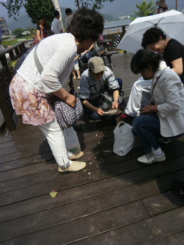 在箱根河口湖的薰衣草原,有人打翻了一袋糖果。只見這些日本的婆婆媽媽,馬上自行清理起來。有人彎著腰,有人半跪著,好像在清理自家的客廳一樣,連卡在木板細縫裡的糖果,也小心的挖起來,用塑膠袋裝走。