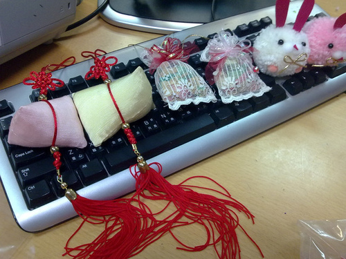 香包的形狀,在端午節,當然也有粽子的形狀,加上傳統中國結,憑添濃濃的東方味。