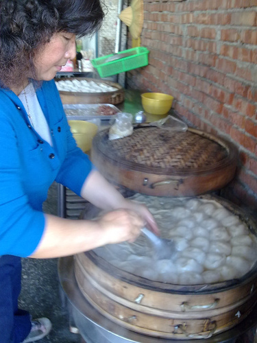 運動完,一群人又去九如鄉市區吃肉圓。這肉圓是用米漿包住生豬肉,新鮮迅速蒸煮而成,吃的時候配上特別的醬汁,一吃就是五個才覺得夠。豬血湯也是必點,老闆說把肉丸吃剩的醬汁澆上去更顯好吃,雖然吃起來這豬血湯有點鹹,但確實變得非常對味。看來一早的運動,又破了功,養豬計畫繼續再得一分。