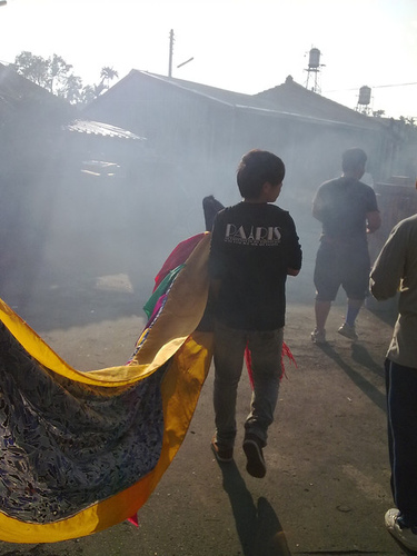 最後臨去前,點燃民家自備的鞭炮,然後禮成,繼續往下一家走去。整個村走下來,總共花了兩個多小時。