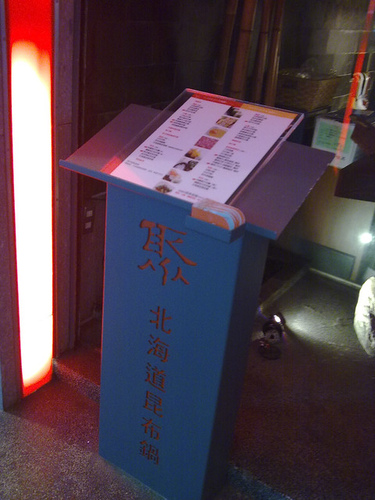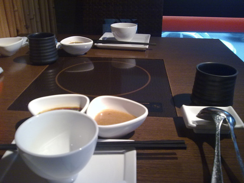 這家店在台北敦化南路和長春路口,從窗邊細細的篩網,看出去敦化南路人車的熙來攘往,更顯得在這店裡用餐的的悠閒和雅緻。店裡有小小的拱橋,有成排成綑的乾竹,有象徵火鍋意象的紅地燈,有深穩的棕色的裝潢,在賓客坐定之後,襯托出桌上高雅的黑筷和白瓷食具,用餐可保有愉快的好心情。