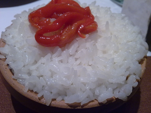 白飯上那坨紅紅的是番茄醬嗎?~新吃法?