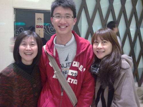 哲宇跟卡內基的同學聚會,稍晚也趕了來,將近一百九十公分的頎長身材,配上一個白白淨淨的娃娃臉,看起來很幼齒。很難想像,他已經是官拜少尉預官退伍,現在是個有為的青年,正等著美國東區知名的工業設計碩士班的入學通知呢!小阿姨和小娟媽這兩位熟女,逮到這個機會,當然是要好好合照一番,順便也沾沾這超級年輕的氣息。三個人站在一起,自然形成險峻的高低差,明顯是一個表姊夫美麗的書法裏,陡峭的”山”那一個字的意象。