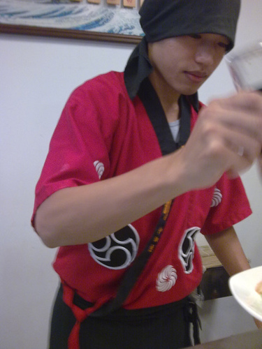 年輕的師傅, 廚師合格的證書就掛在結帳櫃台後方醒目的牆上. 看他們專心調製每一份餐點, 然後親切地的端到你面前給你享用, 真是感到備受禮遇與尊崇. 隔壁桌坐了幾位師奶級的女客, 我看她們豔羨的眼光, 很少離開這位年輕的師傅, 是還在緬懷著少女思慕的情緒, 想著當年放學後在路口相約一起散步回家的那位茅塞未開的熱血青年麼?