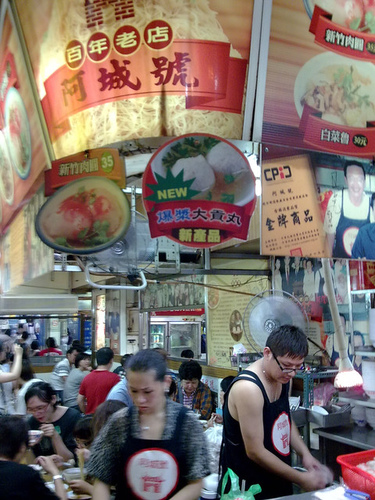 到新竹來當然不會放過城隍廟的小吃,貢丸、肉圓、豬嘴片湯、粉腸、米粉都給它嚐嚐。老闆說,越接近廟口的店面生意越差,所以租金越便宜。大部分的食客在外緣入口處就坐下來吃了。我還以為廟口的是老字號,生意比較好呢!
