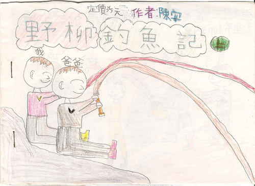 小娟媽最近在整理資料時,發現一份小安小學的時候製作的一小冊漫畫。題目是"野柳釣魚記",應該是學校的功課,用釘書針整整齊齊的裝成一小本,看起來童趣十足。