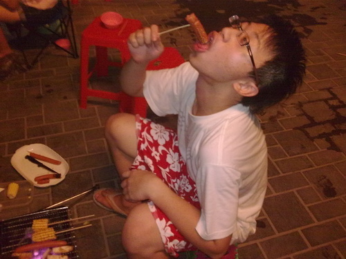 準備烤肉,我們往往會傾向準備太多: 豬肉片、牛肉條、蝦子、魷魚、蛤蠣、香菇、金針菇、玉米,以顯示我們的好客與富足之後對親友的溺愛。其實烤肉是一種深植在文化中的儀式,就像原住民的XXX祭一樣,只是我們燒烤的是已經支解的獵物,離獵物死亡的痛苦的感受較遠,看起來比較文明罷了。