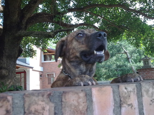 我們離去的時候,這隻狗就把前腳趴在磚牆上,朝著我們的後腳跟,又是一陣的狂吠,好像我們偷走了它什麼東西。我們不就是在它愛戀的茄苳樹下,恰巧享用了一點茄苳樹的影子,然後背著早上十點的烈陽,有些影子偷偷跟我們回家罷了。