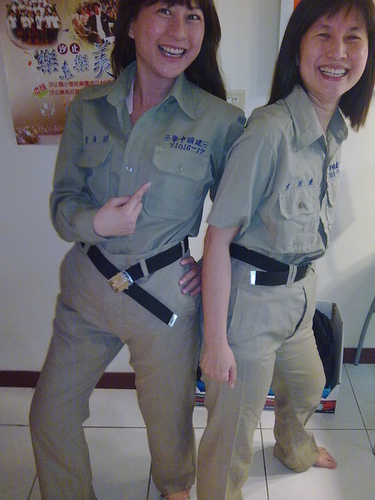 P.S. 如果教官看到這個Blog,怪罪下來,建議他用以下的罪名: 竊用了敵校的腰帶,對學校不忠;錯亂的熟齡性別,嚴重毀壞校譽;輕狎不拘的態度,無禮義廉恥。至於處罰,建議罰寫[我愛ㄐㄧㄢˋ 中]一千遍,公布在學校穿堂上,以昭全校警戒。