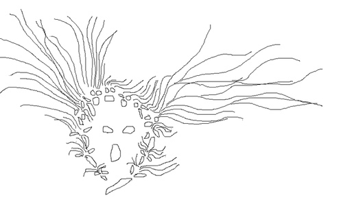 林投死後,她流出的鮮血,染紅了這海岸上的石頭,在這些堅硬的石縫裏,長出了一種生命力超強的植物。她白嫩的氣根,像解去纏布的小腳,總毫不猶豫去鑽向每一個可趁的縫隙,去填滿每一個慾與望的未完成。她咬牙的切齒,佈滿在全身深綠色的葉臉,在你不經意挑動她的時候,她會回報你一道道悲紅的齒痕,向你控訴啃噬著戀人相愛的殘念。這種植物,後來村裡的人就把它叫做林投,一個死了之後的復生。