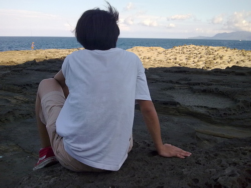 我也想融入這當前的美景,只是這石頭太頑固,海水都可以舔它千創百孔,我怎奈何不了它一個洞洞。