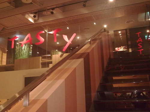 內湖的Tasty位在內湖重劃區的瑞光路上,大樓附設立體平面式停車場,星期假日少了上班出入的人,停車堪稱方便。以前都是到復興北路那一家,就可以想像停車的困難,往往必須停到破舊大樓的地下室,停車費也所費不貲。上網查到了這一家,想試試不一樣的店,所以六人一行就去了。