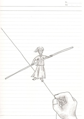 青少年或許會認為,他們才是走在鋼索上的人,他們看不清未來的路,他們只好憑著感覺、衝動、勇氣,一步一步走向人生鋼索的下一步。那捏住鋼索另一頭的人,或許是他們的朋友,或許是他們的父母,或許是隔代教養的祖父母,或許是學校的師長,或許是偶遇的某個貴人。他們必須相信這些人,絕對不會輕易放手,因為在鋼索上,間不容髮,懷疑沒有絲毫的空間。