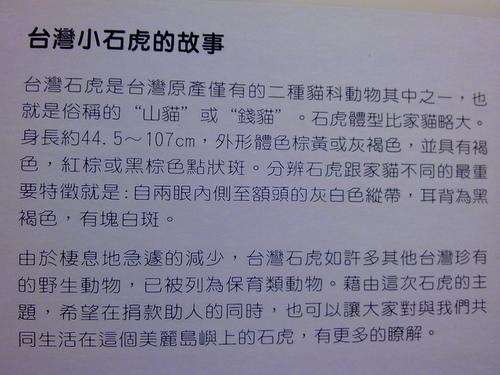 青少年紀事 臺灣小石虎。聯合勸募 by 2009 年 12 月 2 日 written by 2009 年 12 月 2 日 162 今天收到聯合勸募寄來的一對台灣小石虎玩偶,可愛極了。 小石虎是台灣保育類動物,也叫做"山貓"或"錢貓"。 小女石虎。 小男石虎。 但願這一點棉薄,可以幫到一些人,記得當時選擇用在青少年身上。 小寬很喜歡玩偶,拿回家馬上被他收養。吾愛其禮,爾愛其羊。 Damakey 2009/12/1 4 comments 0 FacebookEmail previous post 棒球夢 next post 藍寶。妳要保重 You may also like 2024 台北馬... 2024 年 12 月 16 日 孩子們包的大紅包 2020 年 1 月 30 日 小寛子畢業快樂 2019 年 6 月 1 日 紅包樂 2019 年 2 月 6 日 妳願意嫁給我嗎? 2018 年 7 月 1 日 Enough 2018 年 5 月 12 日 比讀書更重要的 2018 年 4 月 21 日 小漆 2018 年 2 月 20 日 除夕領紅包 2018 年 2 月 15 日 嶺南技術學院校園... 2013 年 10 月 17 日 4 comments swallowsky 2009 年 12 月 3 日 - 上午 11:50 超可愛啊^^哈哈 推推 Reply Damakey 2009 年 12 月 3 日 - 下午 10:35 比想像中的可愛! Reply jayon 2009 年 12 月 3 日 - 下午 11:34 好可愛的小石虎啊 ^^ 石虎長出現在低海拔山區.據說蠻多山區養雞場附近.常會有石虎出沒.但 是常被當成家貓.畢竟體型和家貓差不多… Reply Damakey 2009 年 12 月 8 日 - 下午 10:08 專家一出手,就知道有沒有! 感謝補充。 Reply Leave a Comment Cancel Reply Save my name, email, and website in this browser for the next time I comment.
