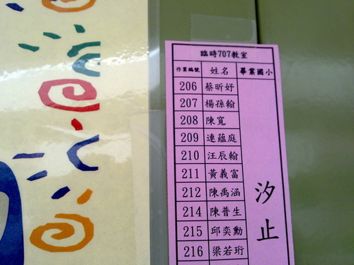 今天小寬到青山國中報到。暫時被編在707教室,報到之後要做智力測驗,然後依分數做常態分布,讓各種程度的同學平均分配到每一班。小寬說智力測驗超簡單,看來是沒有測出他有多聰明。