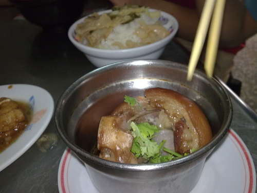 我覺得小寬點的豬腳麵更好吃。老闆給的那碗飯配了酸筍,份量有夠霸氣。