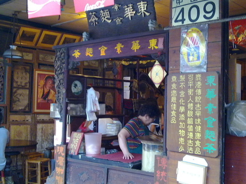 天后宮前的那一條路上有一家專門賣麵茶的店,店面設計得古色古香。
