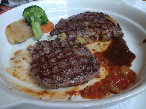 這是我點的菲力經典牛排(Roasted Fillet Steak) ,五分熟。八盎司,看起來小小一塊,吃在口裏可是鮮嫩多汁,跟大餐廳的牛排可不惶多讓。