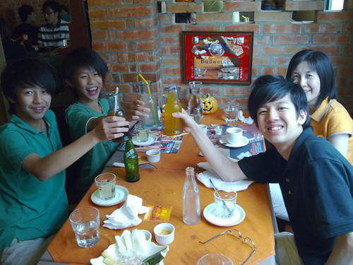 小平剛基測完畢,這一行多少要慰勞考生的意思。現在孩子都有自己的朋友,沒有事先約定還真的很難全家一起出遊。大家一起乾杯吧。