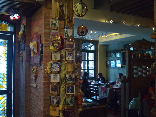 再仔細瞧瞧店內其他的佈置,是不是很有溫馨的異國情調。牆上的布偶是否該在曠野去趕走周杰倫的麻雀,而隨空懸下的蜘蛛形南瓜燈,是否也不經意點亮了童年稚嫩的恐懼?